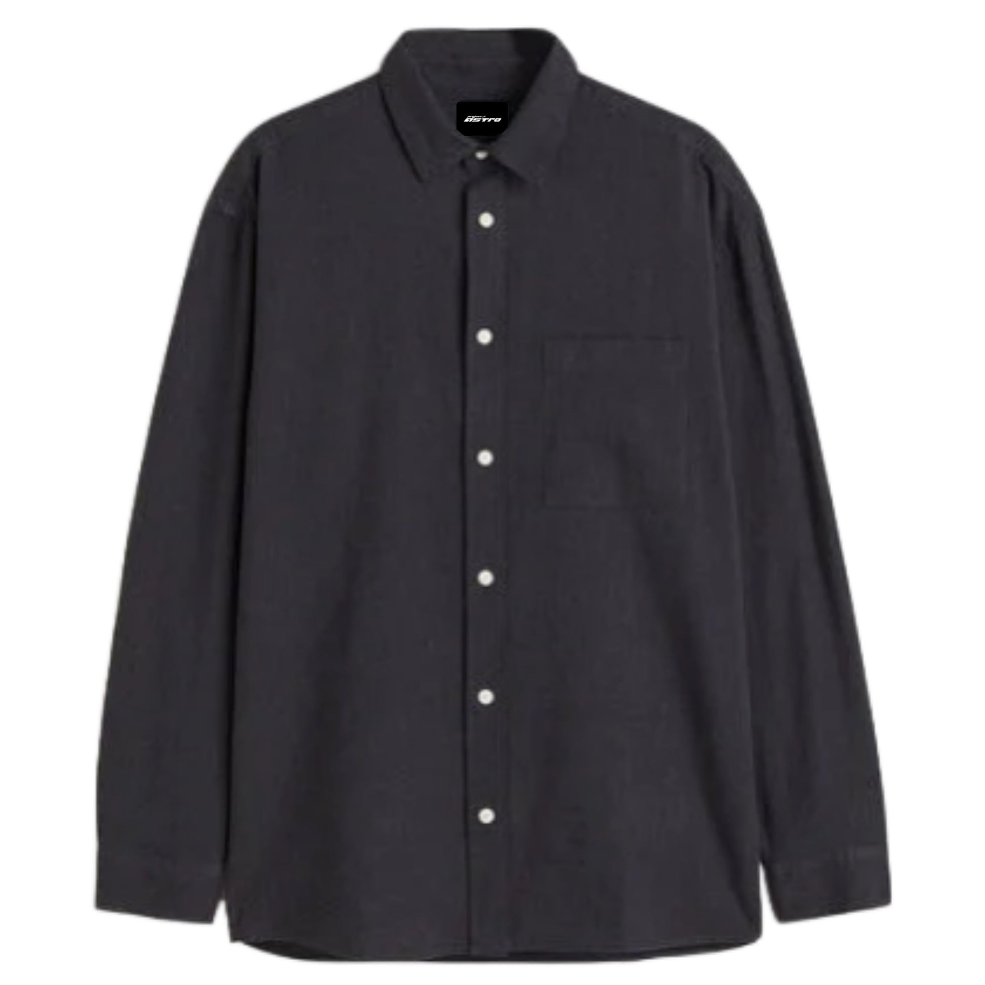 Relaxed-fit shirt in a linen and cotton weave with a turn-down collar, classic front and yoke at the back. Long sleeves with buttoned cuffs and a sleeve placket with a link button, an open chest pocket and a gently rounded hem.